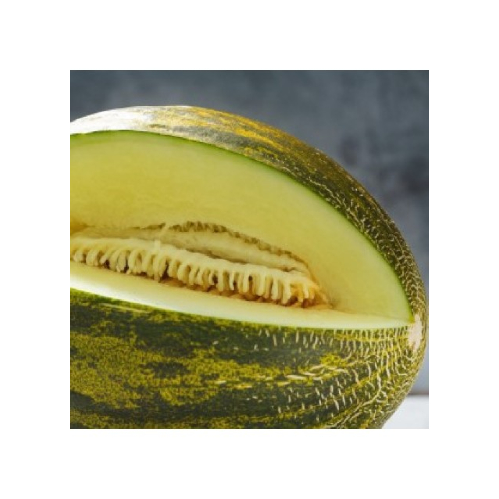 Spaanse honingmeloen in de vorm van een rugby. Groen van binnen en lekker zoet.