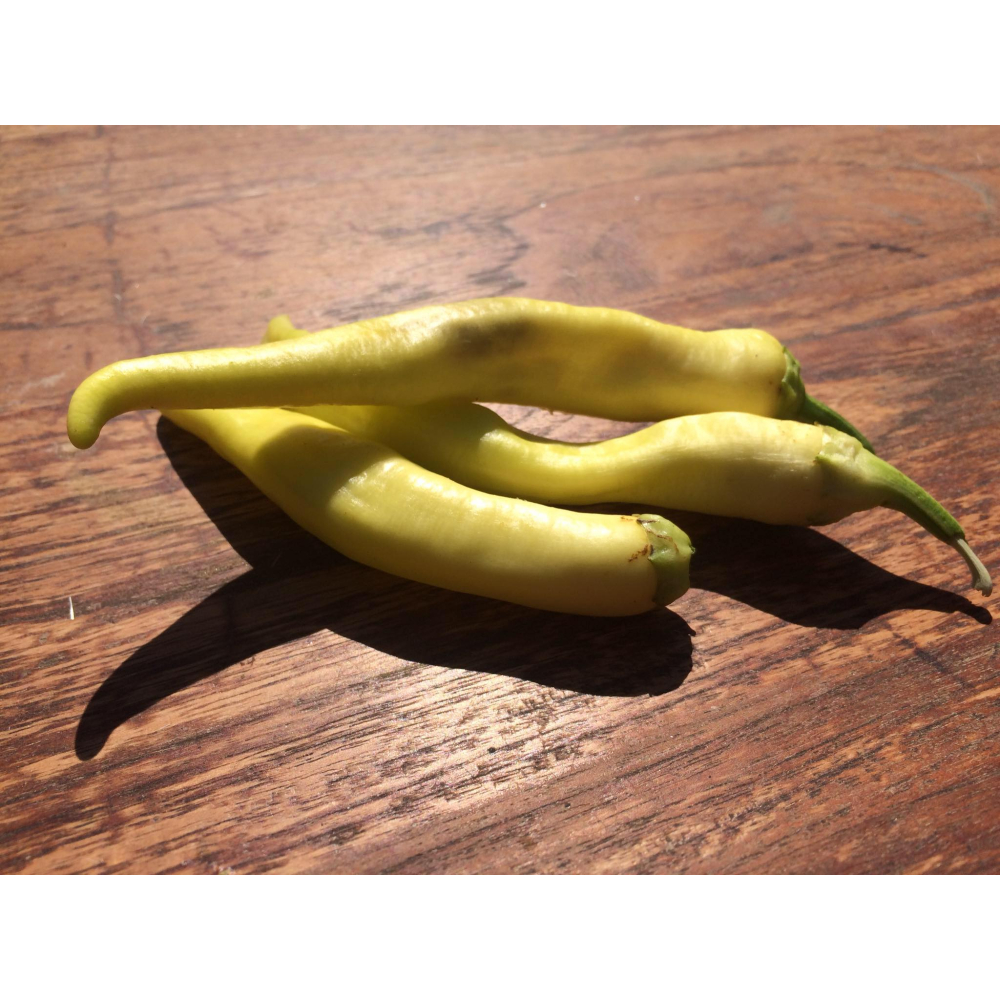 Witte zoete punt paprika, heerlijk rauw te eten. Kleurt later naar oranjerood.