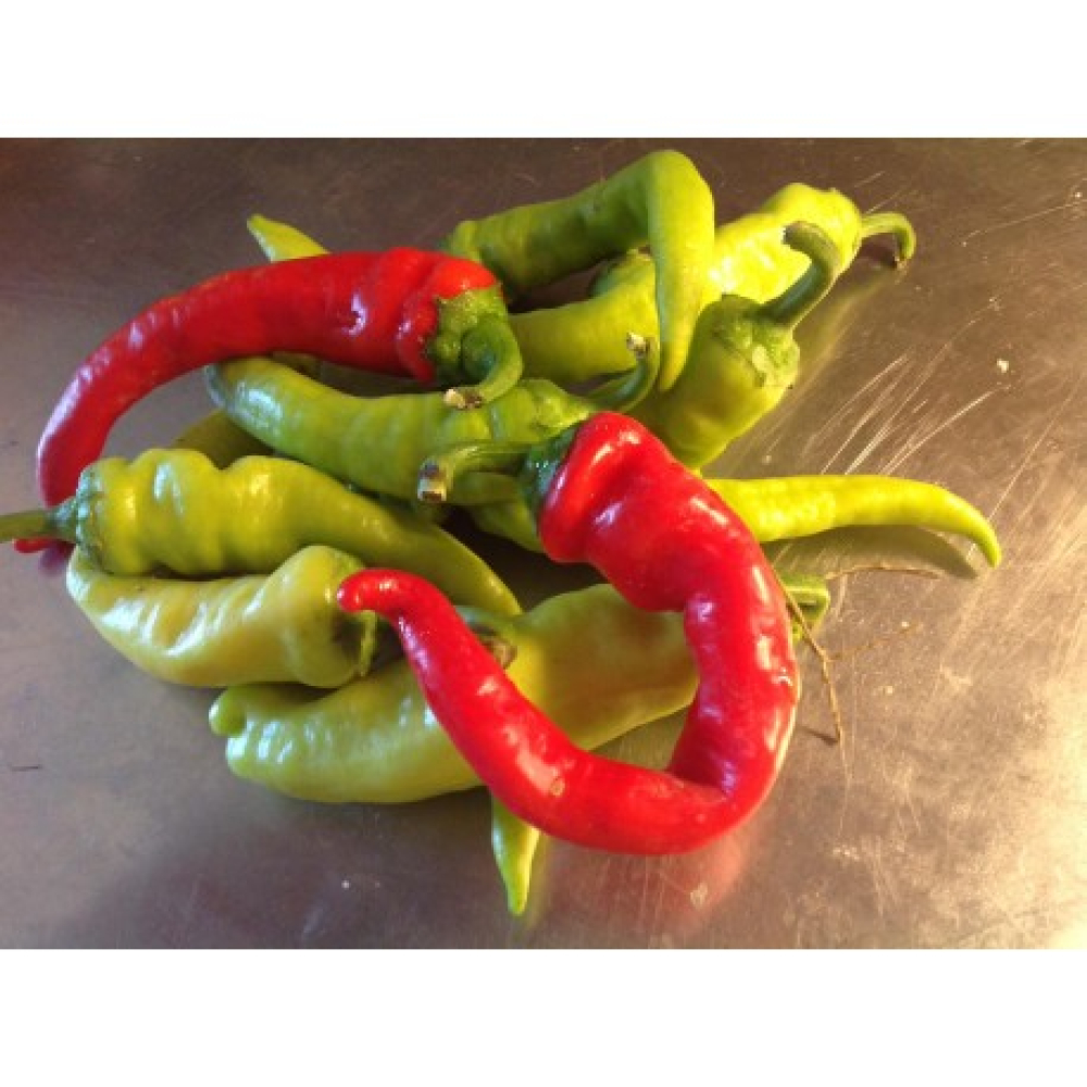 Grote peper, model puntpaprika. Niet al te scherp en meestal groen geoogst en rauw gegeten. Bij afrijpen wordt hij rood.