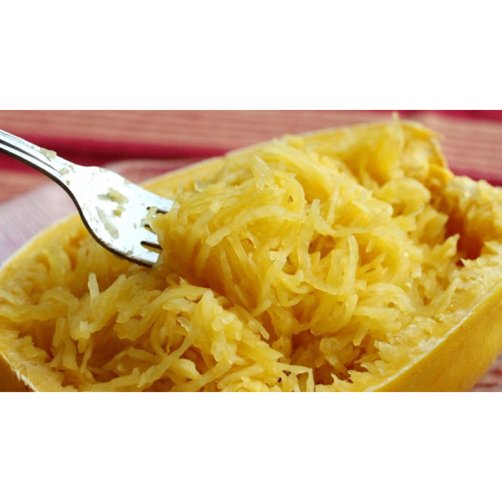 Hele bijzondere pompoen. Je snijdt hem voor gebruik in 2 helften, verwijderd de zaden en vult hem met een lekkere saus. In de oven verandert het vruchtvlees in spagettislierten. Heerlijk om op het laatst nog even een kaaslaagje erop te leggen.