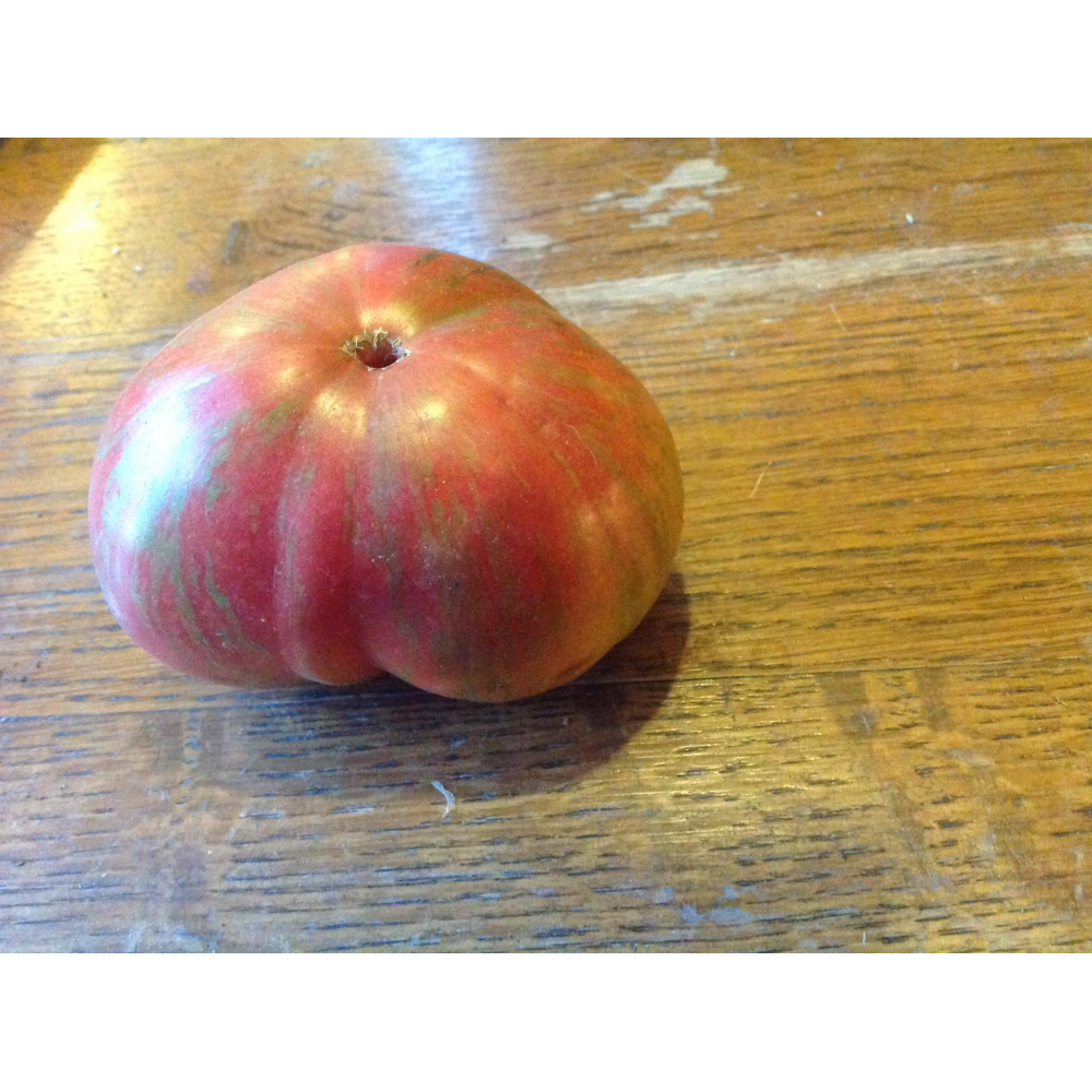 Grote mooie gestreepte vleestomaat, broertje van de tie dye green.