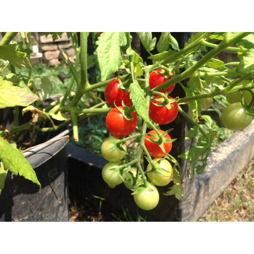Hongaarse trostomaat formaat kerstomaat. Heel erg zoet en kan enorme trossen procuceren.