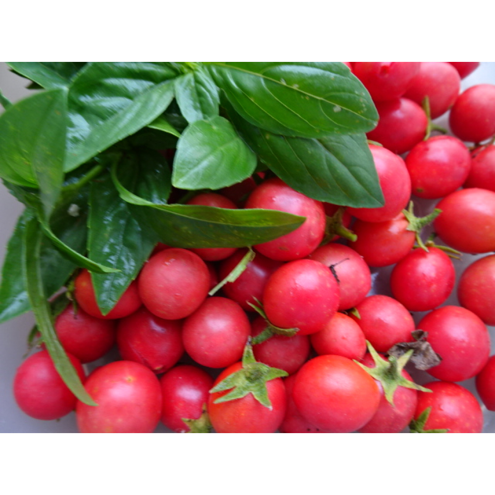 Directe afstammeling van de wilde tomaat. Hij hoeft niet gesnoeid maar neemt wel veel ruimte in daardoor. Een gigantische opbrengst van kleine rozerode tomaatjes met dunne schil