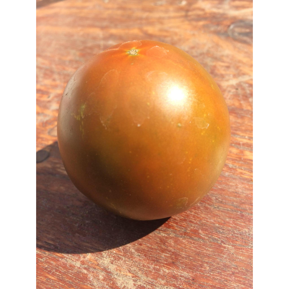 Paars/bruine vleestomaat, een kleine maar toch een vleestomaat. Heerlijk zoet en aromatisch, het lekkerst om rauw te eten.