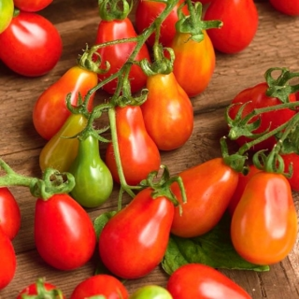 klein rood peervormig tomaatje, hele goede opbrengst en erg geschikt voor pot op balkon of kleine tuin.
