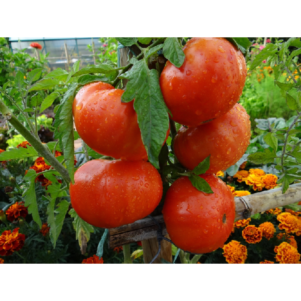 Vleestomaat, redelijk vroeg, goede opbrengst goed sappig en licht zoet