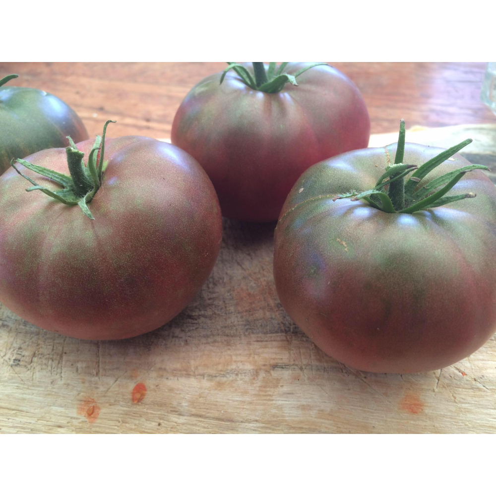 Een tomatenras uit de USA. Eigelijk is het dezelfde tomaat als de black from Tula maar dan met aardappelblad ipv gewoon tomatenblad. Al met al een donkerrode, vleestommat met een geweldige smaak. Ik eet hem het liefst in een salade.